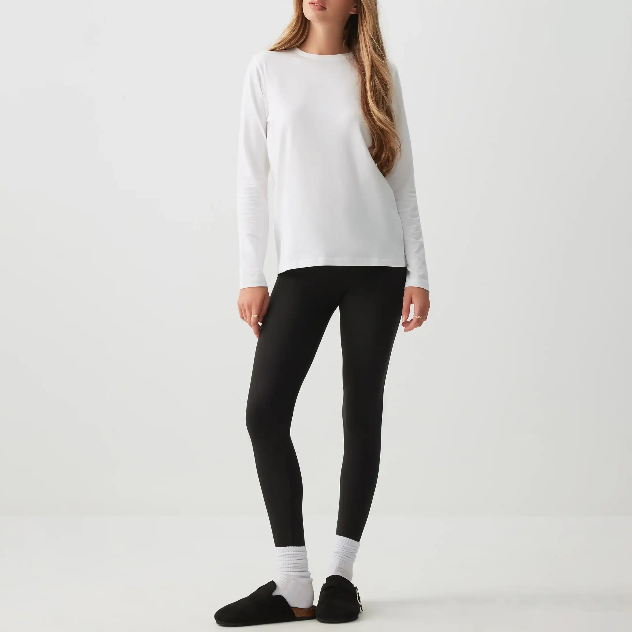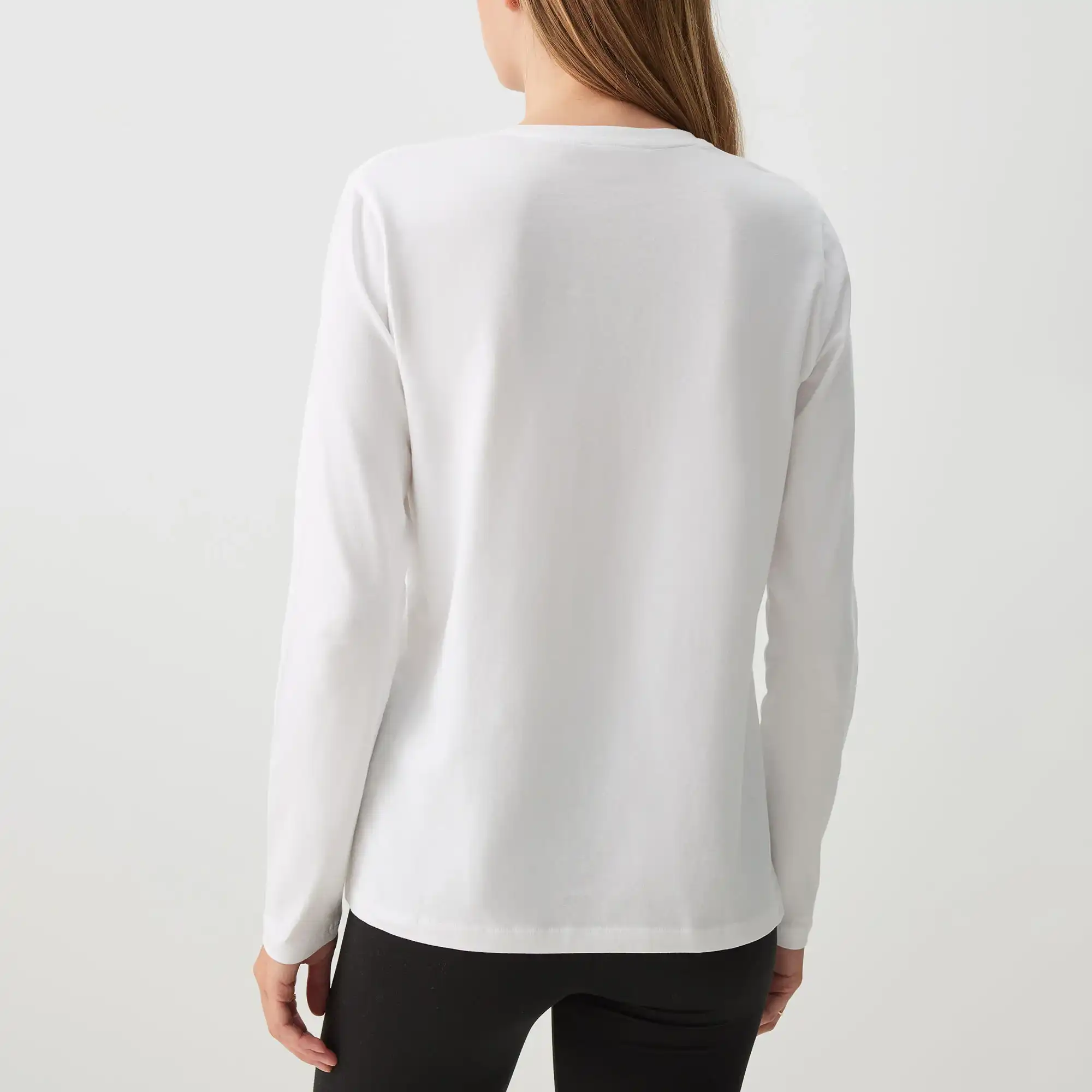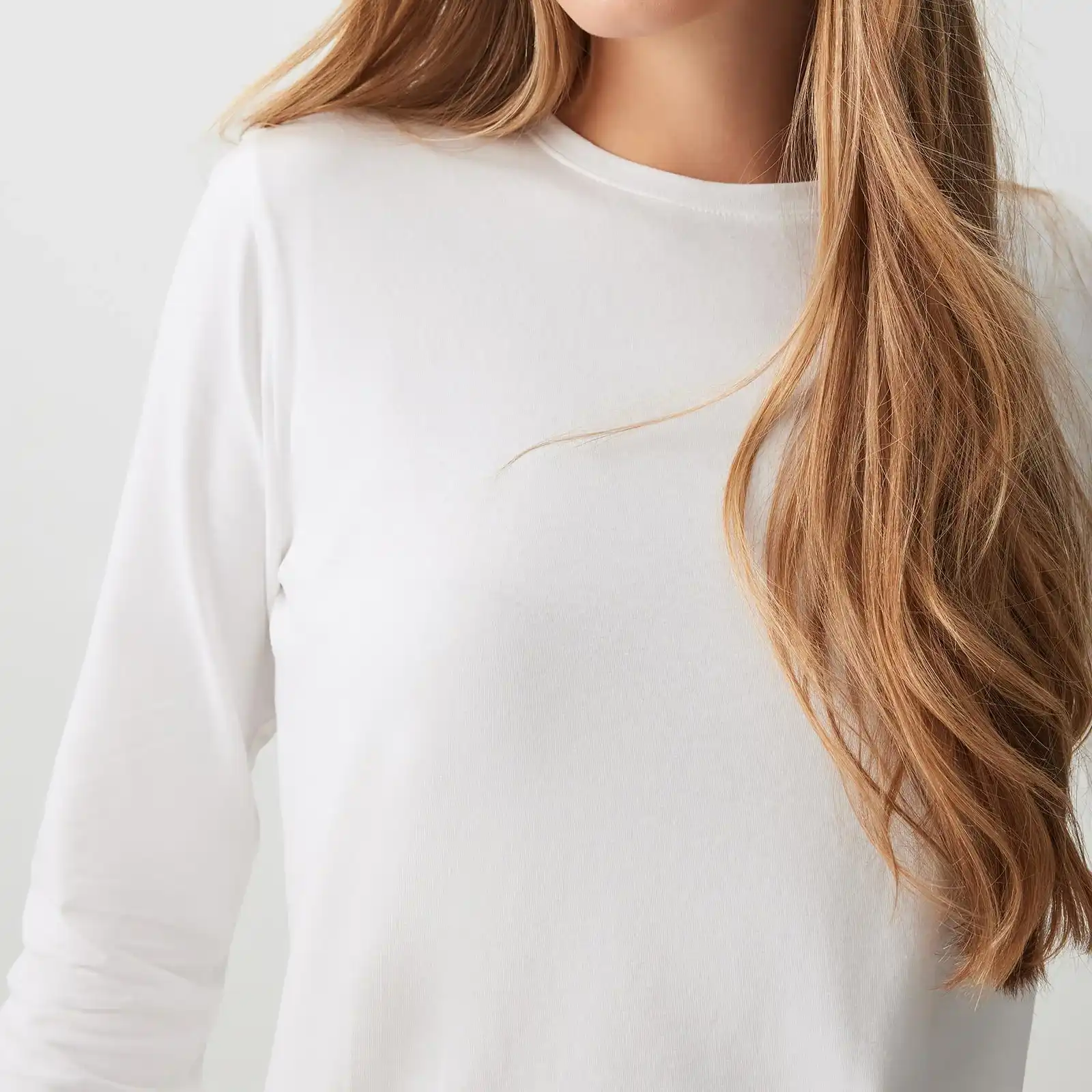 Crafted from stratchy cotton, our regular-fit white long-sleeve crew neck top is a soft and breathable choice for any casual day outfit. This staple piece effortlessly combines comfort and style, making it a must-have for your wardrobe. Style it with your favourite jeans, skirts, Leggings or layer it under a chunky knit for a trendy fit.