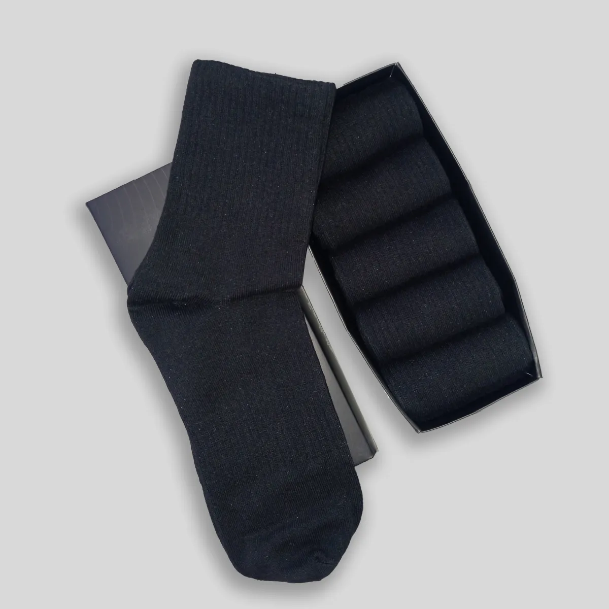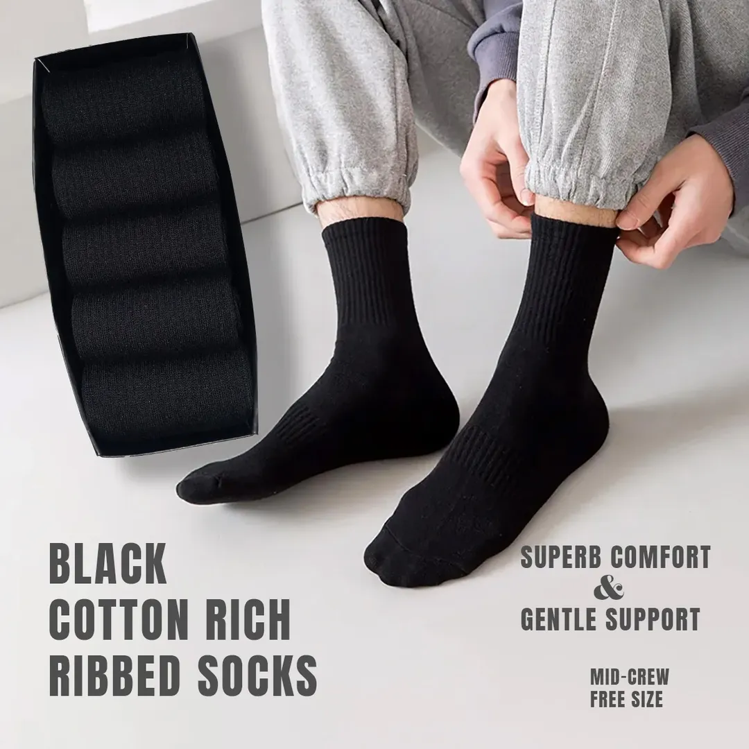 Everyday Lifestyle Solid Black Rib Mid-Crew Socks: