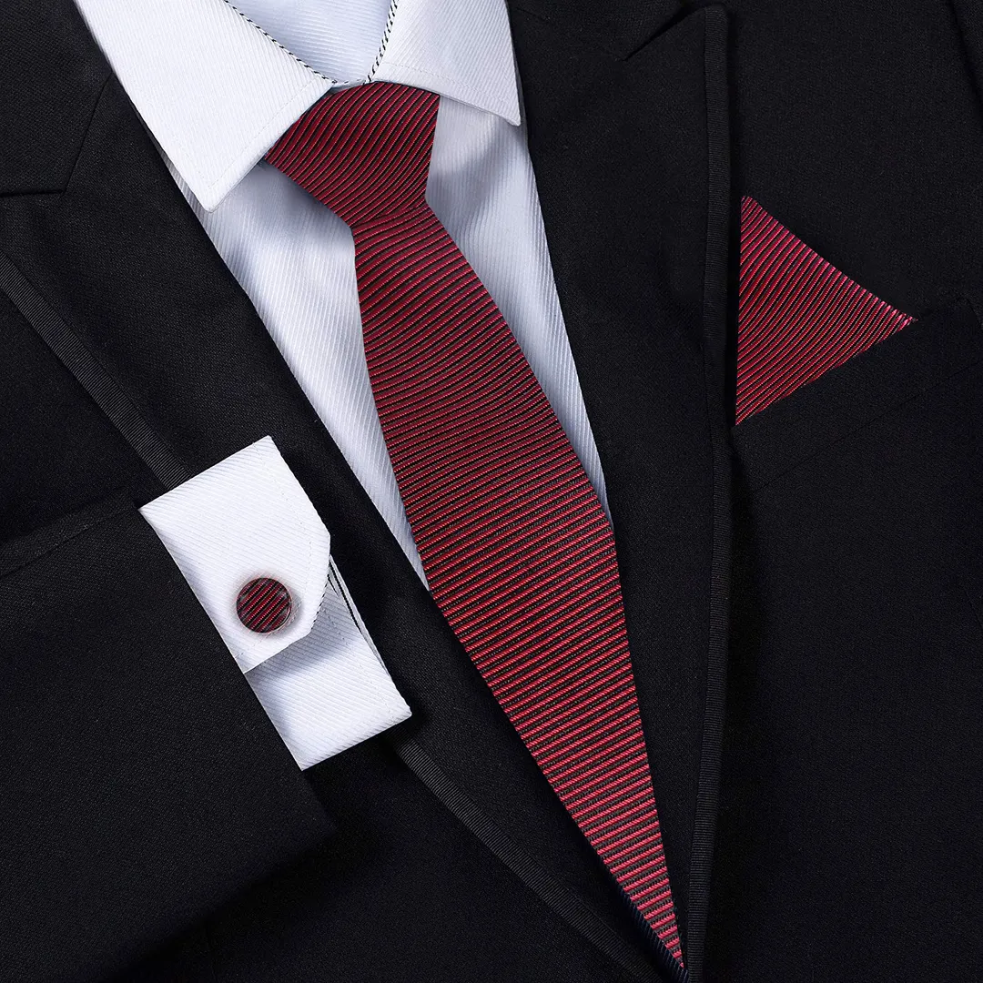 Superior quality : Luxurious silk tie, durable metal cufflinks, practical pocket square and tie clip.