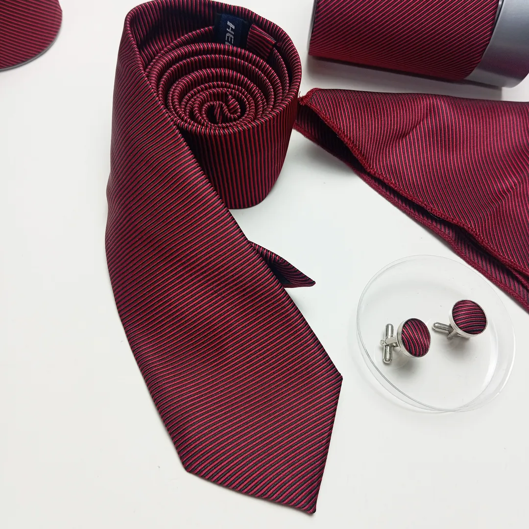 Discover our High Quality Tie Gift Set , a premium selection including an elegant tie, refined cufflinks, a quality pocket square, and a tie clip. Ideal for a business gift, a wedding, or any special occasion, this set combines sophistication and practicality for the discerning modern man.