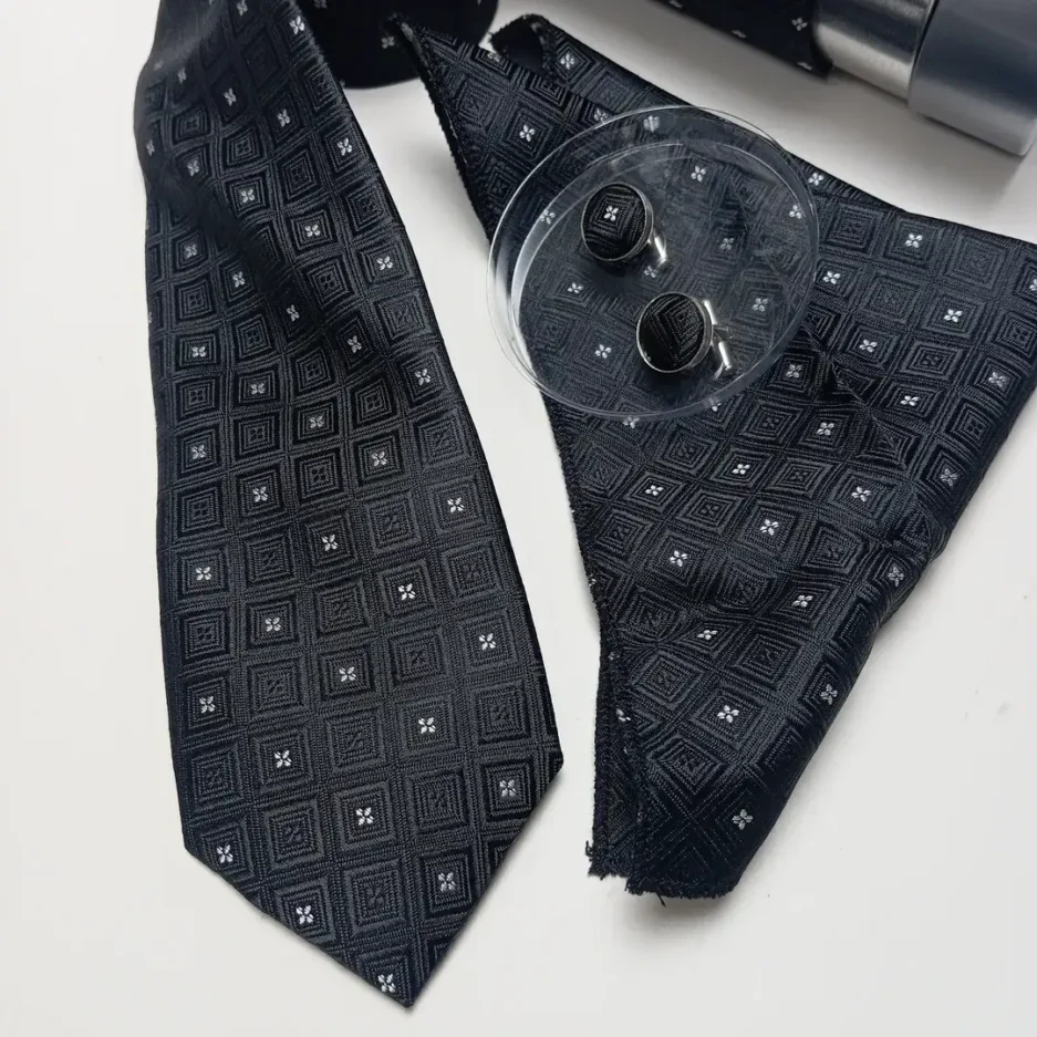 With its matching accessories and timeless style, this set is a must-have for any man’s wardrobe.