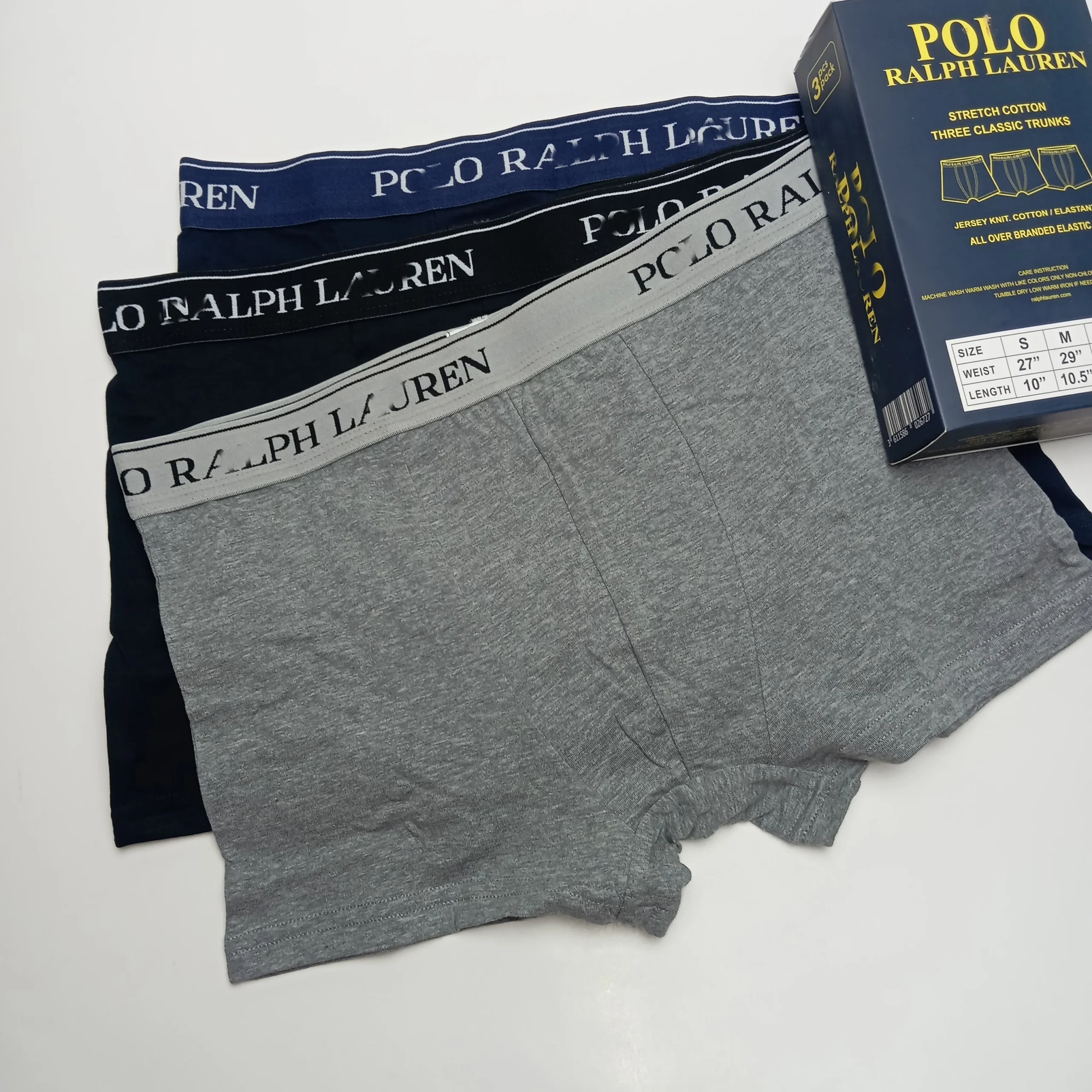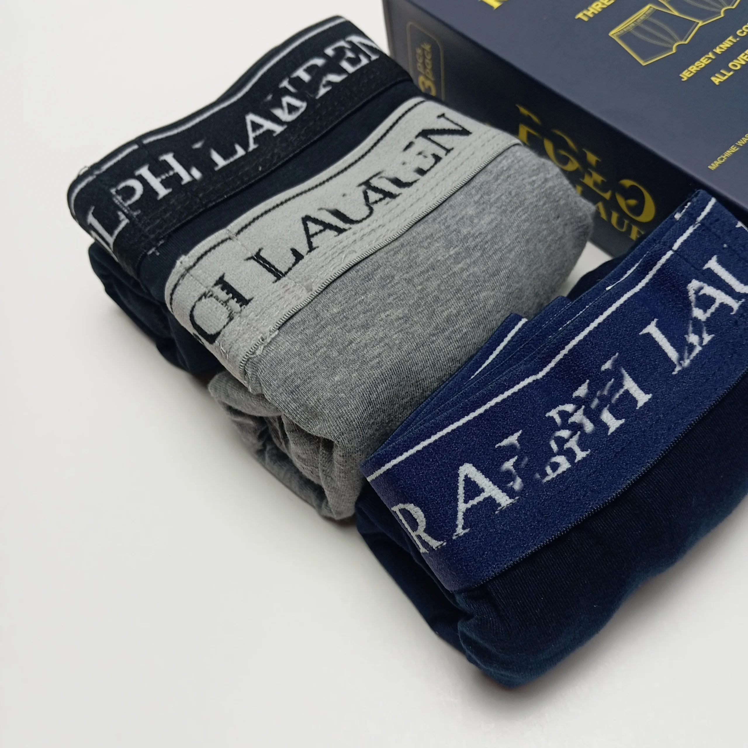 Set comes with three pairs of boxer shorts.