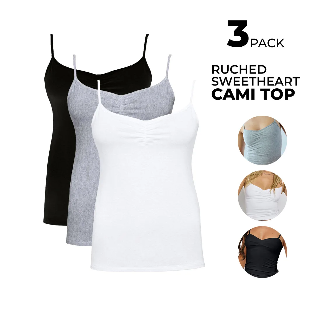 Ruched Sweetheart adjustable Cami Top 3 pieces