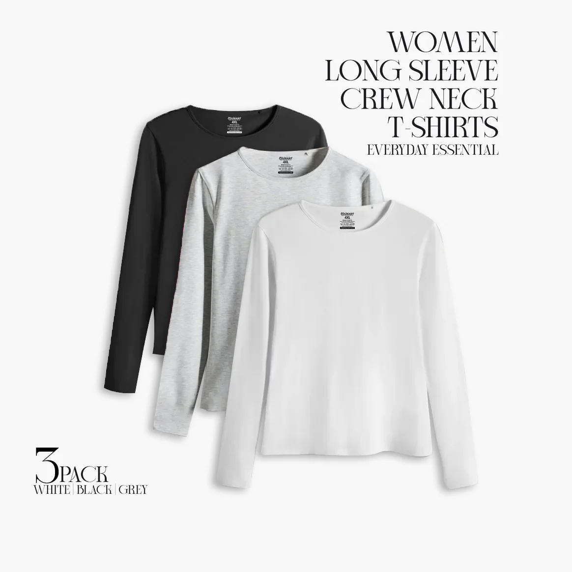 Women Basick Long-Sleeve Cotton T-shirt -3 Pack